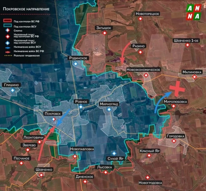 В Покровске российские штурмовики активно действуют в черте города, мешая противнику сосредоточить в нем силы для ударов. В это же время прибывшие подкрепления ВСУ пытаются контратаковать на флангах, на которых наступление армии России идет медленнее. Результата у таких контратак почти нет.