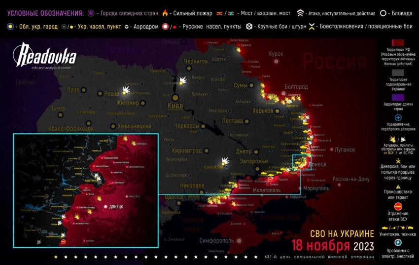 Новая карта боевых действий на Украине по состоянию на 06:00 мск 19 ноября 2023 года