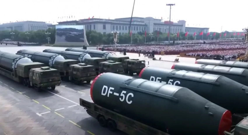 Также в параде задействованы стратегические ракетные силы с гиперзвуковыми ракетами Dongfeng-61, двухступенчатыми МБР DF-5C. Ракеты DF-5C имеют разделяющуюся головную часть.