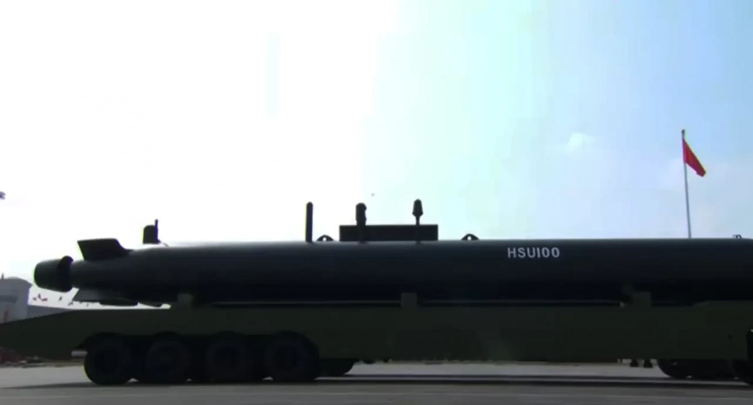 Также зрители парада увидели новейший китайский стратегический подводный дрон. Речь идёт о HSU-100. Это подводное беспилотное средство способно нести ядерный заряд, находясь на глубине сколько угодно продолжительное время.