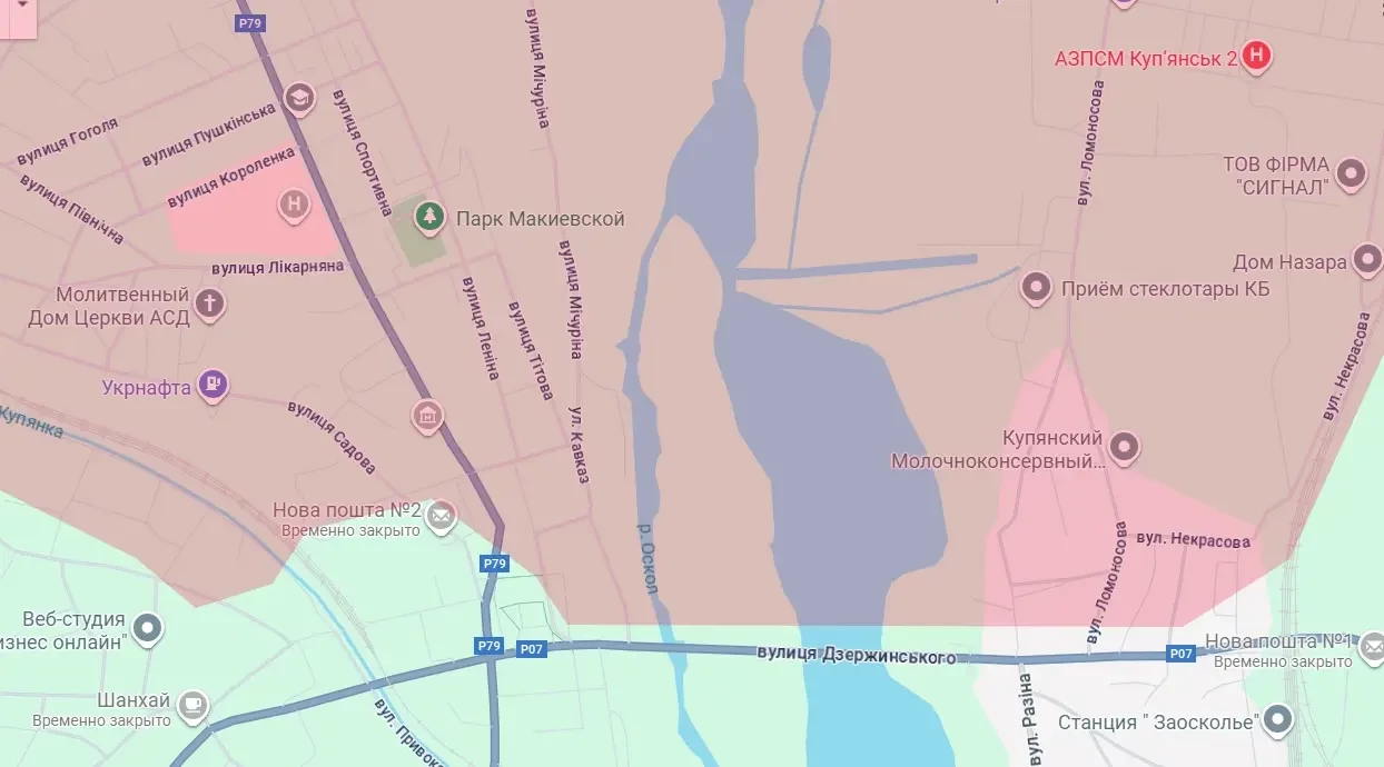 Ещё около 4-5 квадратных километров территории города наши бойцы взяли под контроль в правобережной (центральной) части Купянска. Противник потерял контроль над железнодорожной станцией Кооптах, комплексом зданий Центральной городской больницы и зданием райадминистрации. Под полный контроль ВС РФ перешли сразу две крупных городских улицы – проспект Конституции (бывшая улица Ленина, а теперь, надо полагать, и нынешняя) и улица 1 Мая.