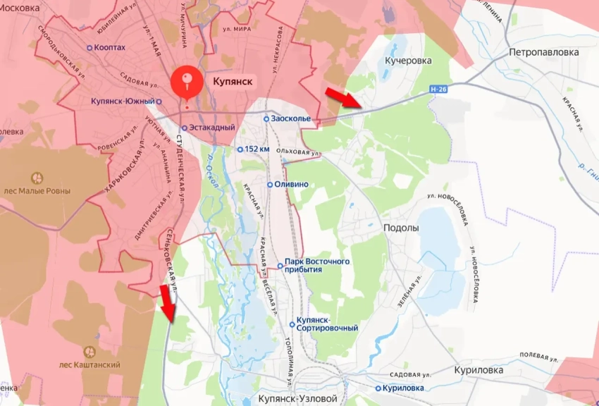 С Купянского направления продолжает приходить информация о продвижении российских войск. Российские войска вышли восточнее железнодорожной станции Заосколье вдоль улицы Сватовская.