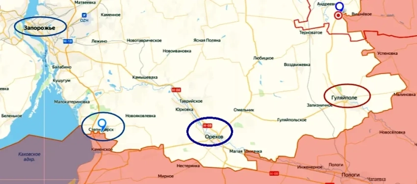 В своем телеграм-канале Зеленский утверждает, что побывал на Ореховском направлении, где российская армия проламывает оборону противника и стремительно продвигается к Гуляйполю. В ходе поездки, которая заняла весь сегодняшний день, Зеленский посетил украинские подразделения в районе пгт Степногорск.