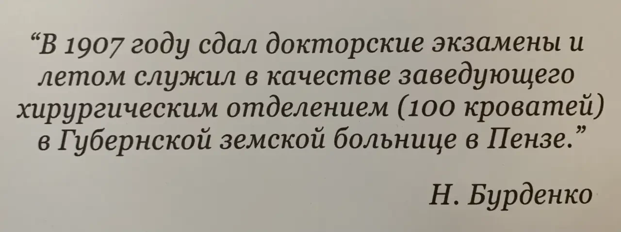 Ну а мне есть смысл повторить этот рассказ в чисто журналистской интерпретации и рассказать о поистине героической судьбе человека пензенской земли, врача с Большой буквы Николая Ниловича Бурденко.