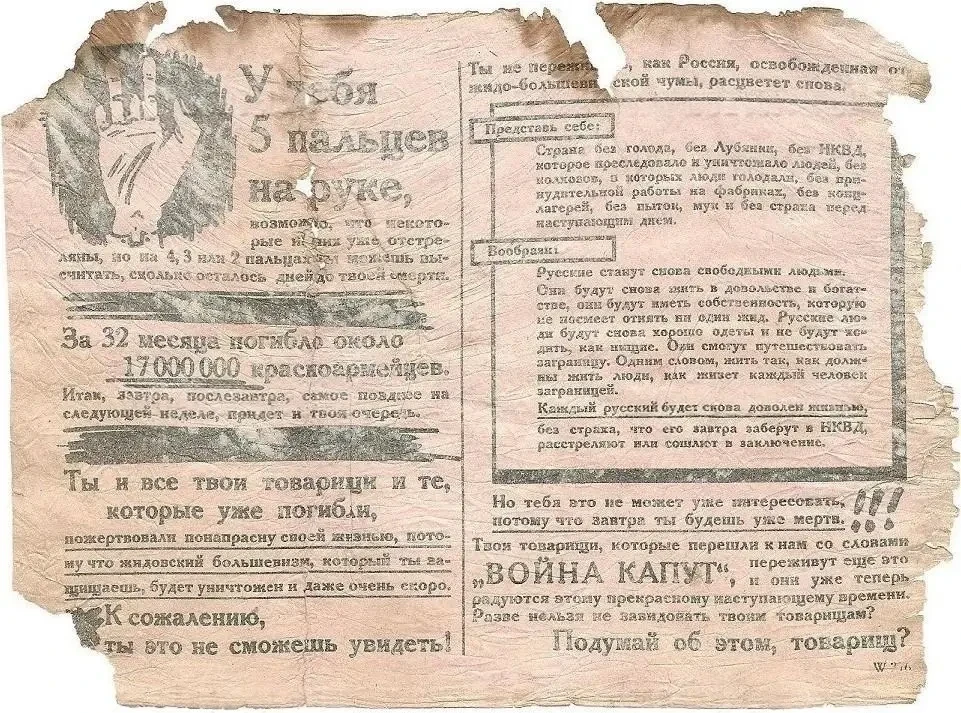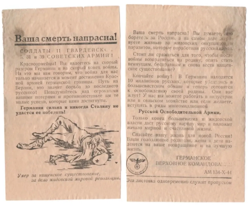 Интересная листовка, в которой советских солдат называют «обречённые на смерть»