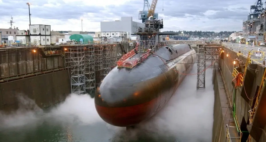 ПЛАРБ USS «Невада» SSBN 733 на ремонте в сухом доке Дель-Пир (ВМБ Китсап, 29.12.2023)