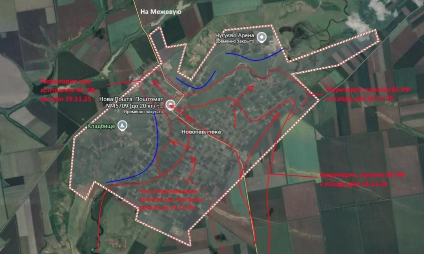 Сложная ситуация сохраняется в районе Новопавловки. По словам Подоляки, преждевременные заявления о полном контроле над населённым пунктом не подтверждаются, однако инициатива остаётся за российскими войсками. Они удерживают позиции внутри села и наращивают группировку для продвижения с юга на север.