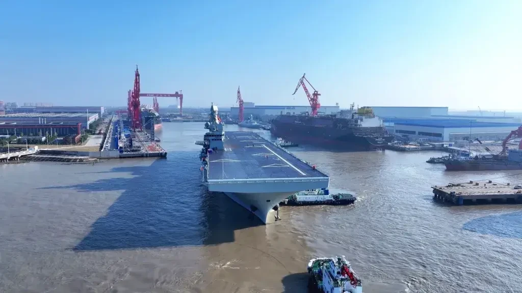 Десантный корабль-амфибия Type 076 Сычуань покидает верфь Hudong-Zhonghua для проведения первых ходовых испытаний
