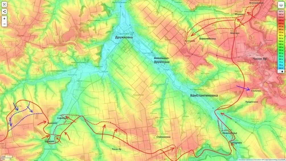 Параллельно на самом Константиновском направлении продолжаются интенсивные бои. По данным мониторинговых каналов, российские подразделения ведут наступление севернее Иванополья и закрепляются в промзоне на южной окраине Константиновки, где продвижение составило до 600 метров. Также завершена зачистка района между Александро-Шультино и Предтечино.