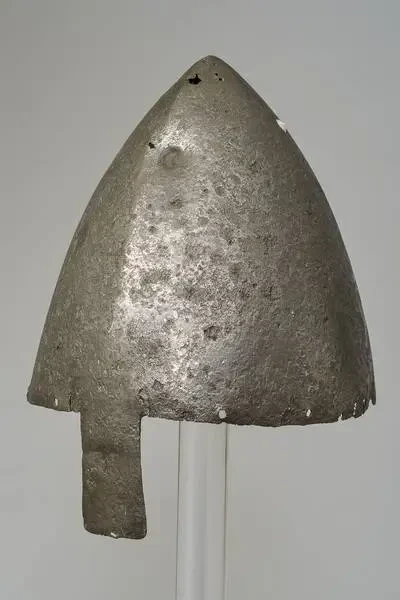 Типичный цельнокованый шлем эпохи битвы при Гастингсе. Найден в Оломуце в 1864 г. Палата придворного охотничьего и защитного вооружения. Новый Ховбург, Вена