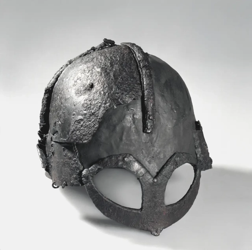 «Шлем Гъермундбю». Единственный на сегодня известный нам шлем с полумаской, найденный при раскопках на земле фермера Ларса Гъермундбю в 1943 году. Исторический музей университета Осло