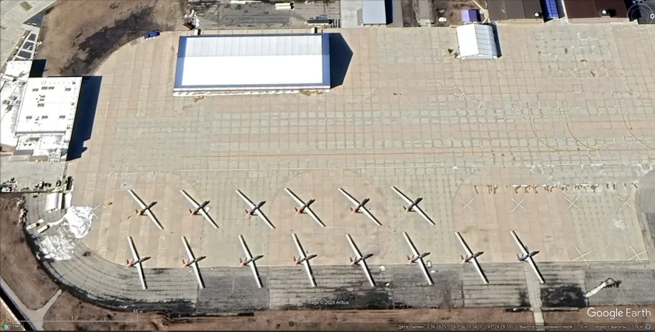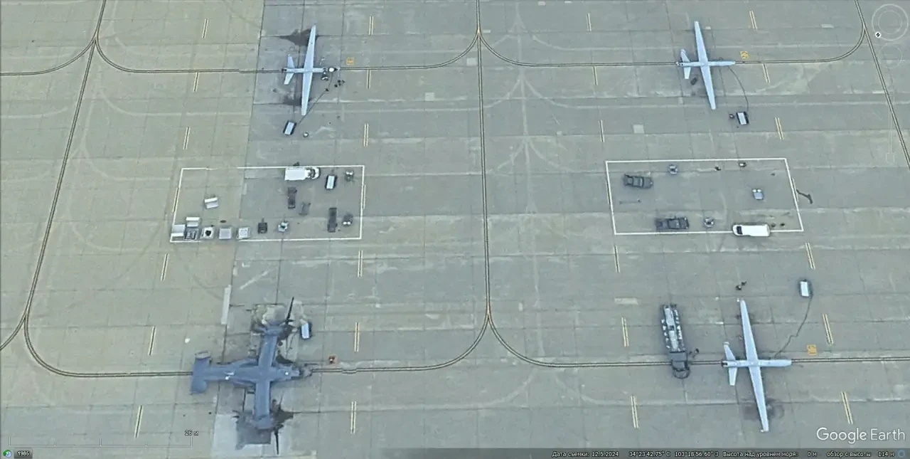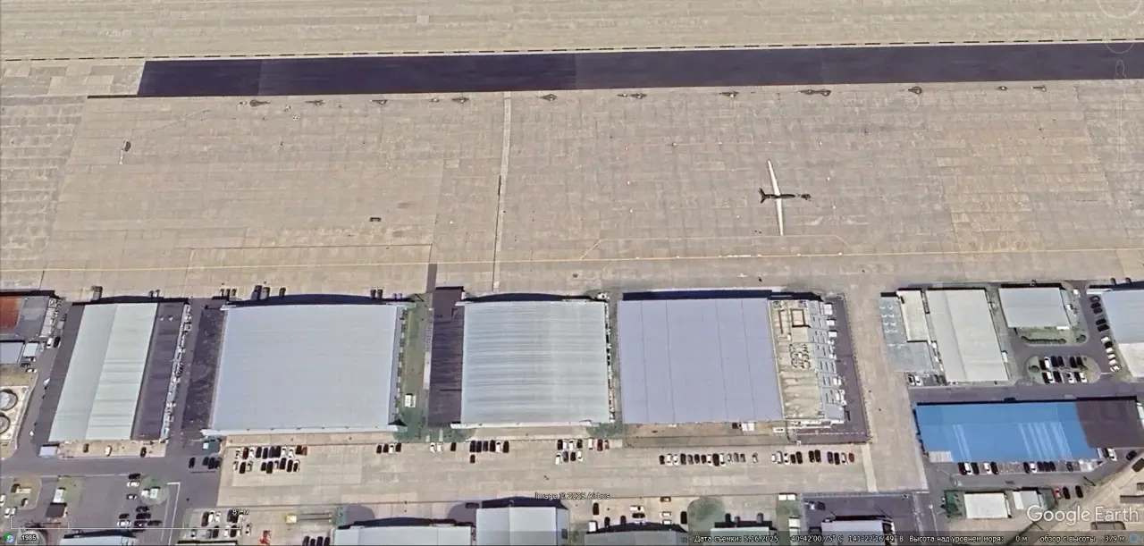 Спутниковый снимок Google Earth: БПЛА над взлётно-посадочной полосой авиабазы Крич