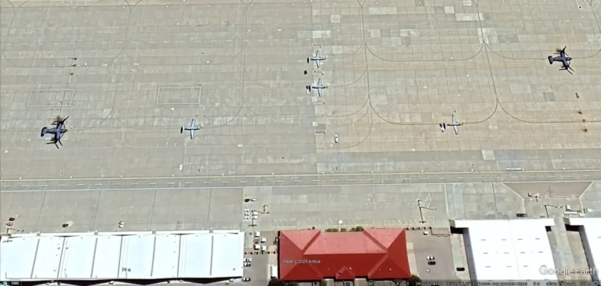 Спутниковый снимок Google Earth: самолёты Pilatus U-28A Draco на авиабазе Херлберт Филд. Снимок сделан в феврале 2023 года