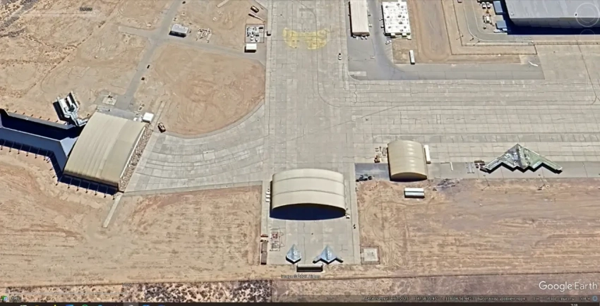 Спутниковый снимок Google Earth: БПЛА Lockheed Martin RQ-170 Sentinel и бомбардировщик Northrop Grumman B-2A Spirit на предприятии Lockheed Martin в Палмдейле