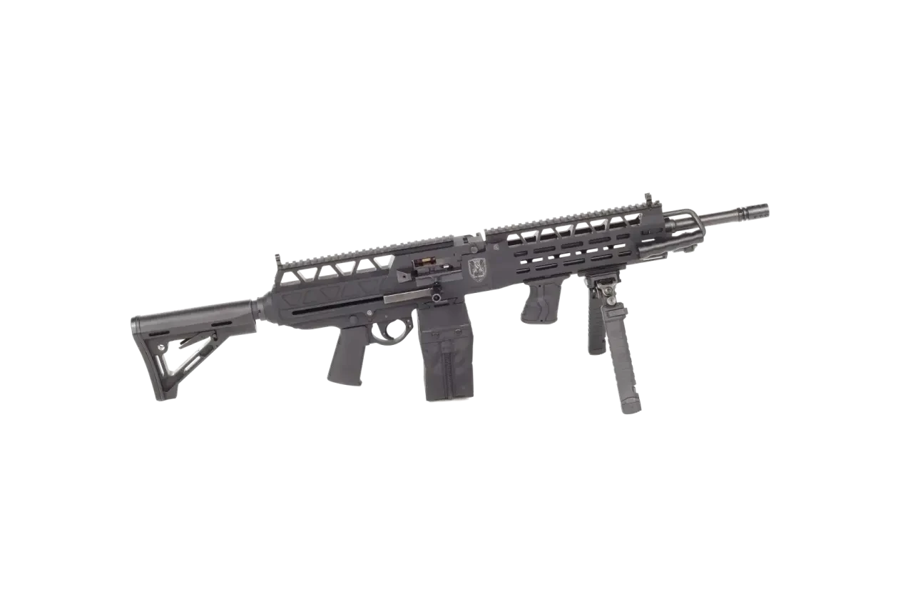 Используется автоматика на основе отвода пороховых газов. Газовый узел, включающий регулятор, находится под стволом. В ранних рекламных материалах упоминался 4-позиционный регулятор, но теперь пишут об 11 режимах. За откат затвора отвечает поршень, вероятно, выполненный заодно с затворной рамой. С рамой взаимодействует боковая рукоятка взведения, во время стрельбы остающаяся неподвижной.