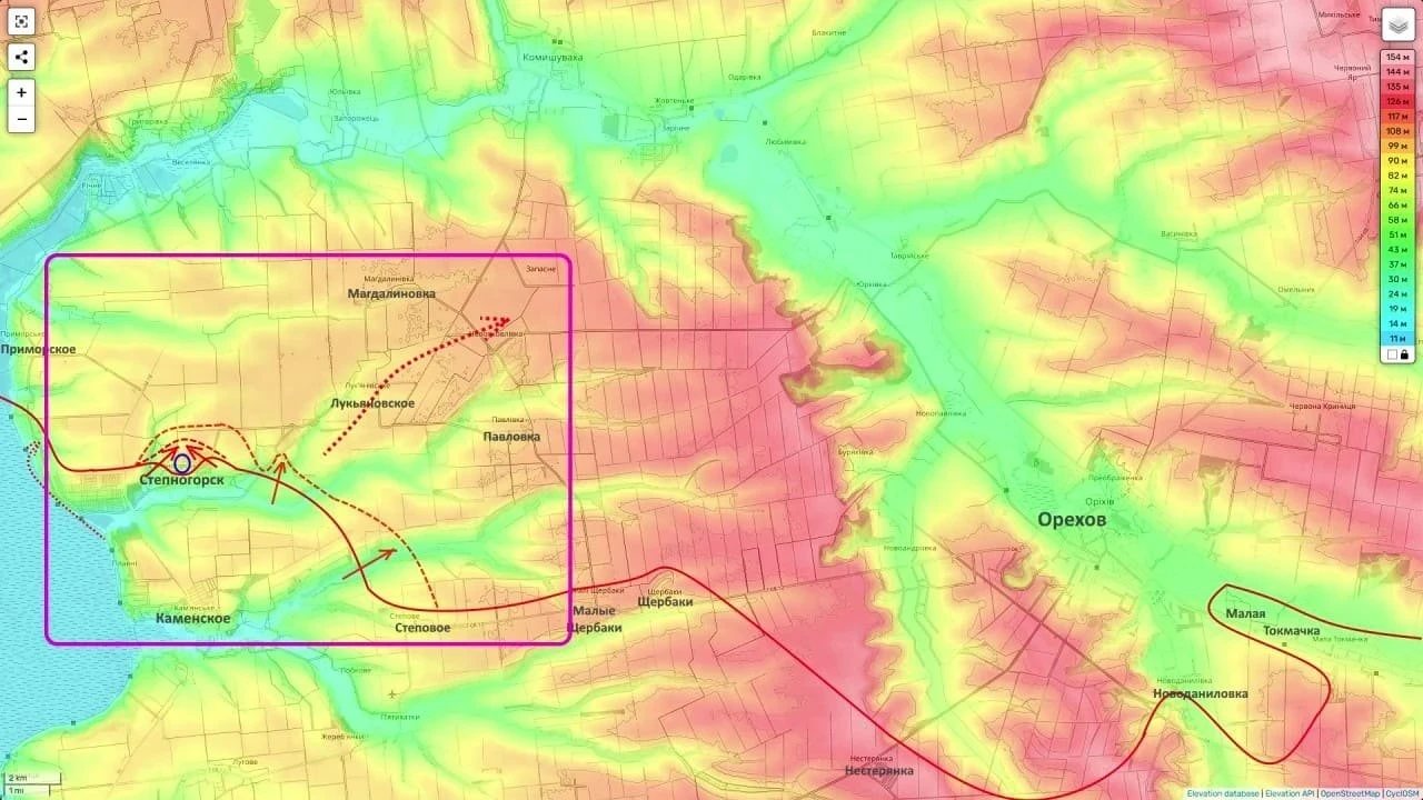 «Когда Степногорск падёт, наши подразделения продолжат активные наступательные действия по направлению к Магдалиновке, Лукьяновскому, Павловке. Как я понимаю, задача - выйти в тыл к Орехову, взять под контроль преобладающие высоты, перерезать логистику и таким образом заставить группировку противника либо отступить, либо сражаться в очень невыгодных оперативных условиях», - заявил аналитик.