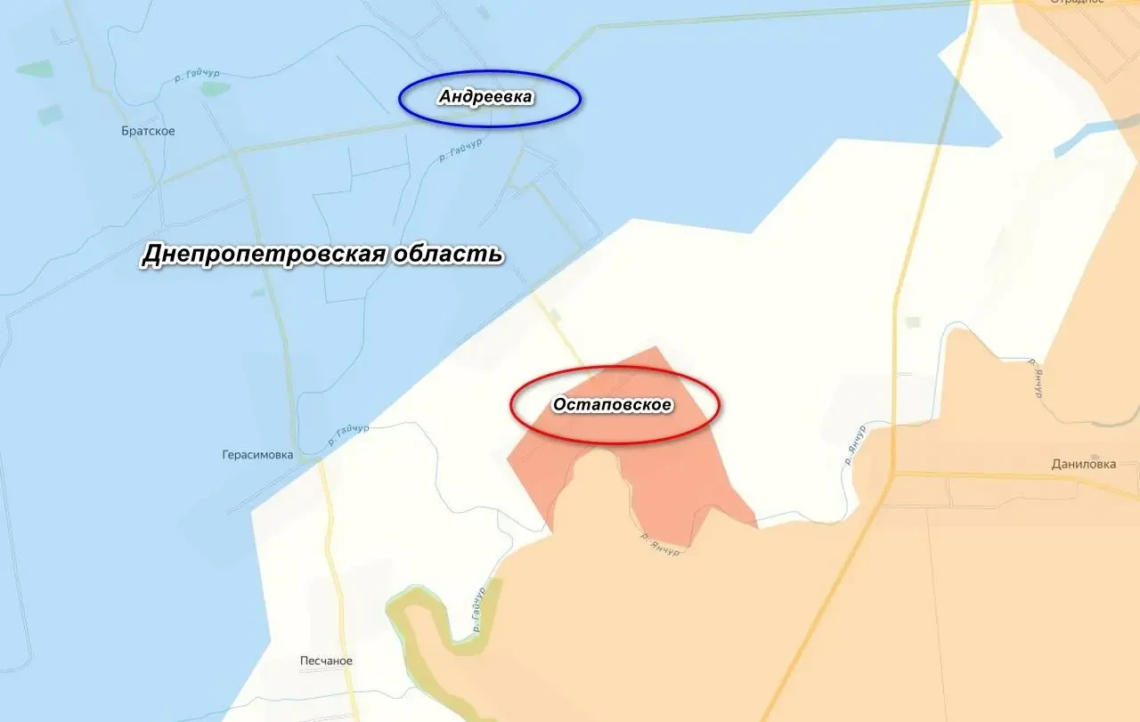 Всего российские бойцы освободили порядка пяти квадратных километров территории, взят под контроль очередной узел обороны противника в Днепропетровской области. Противник потерял в боях за село порядка роты личного состава и более 10 единиц техники. Как предполагается, после Остаповского наши пойдут на Андреевку, расположенную севернее. Тем более, что украинский гарнизон этого села отрезан от снабжения после уничтожения моста через реку Гайчур.