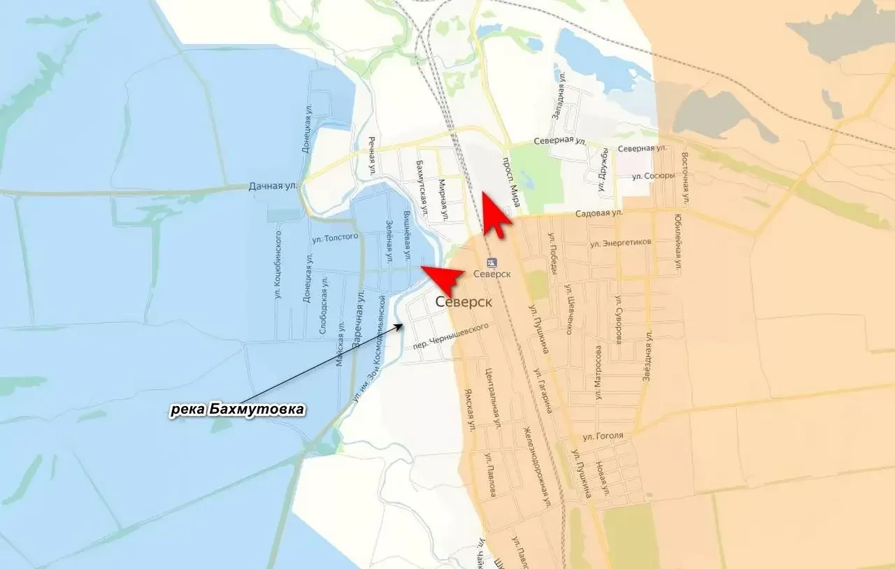 Как заявил эксперт Юлиан Рёпке, Северск практически перешел под контроль российских войск. Он пояснил, что российские войска уже взяли центр города и оттесняют остатки гарнизона ВСУ в западную часть, переправившись через реку Бахмутовку. Но и там у ВСУ не все так хорошо, как докладывали в украинском Генштабе, удержаться в частной застройке практически не удается.