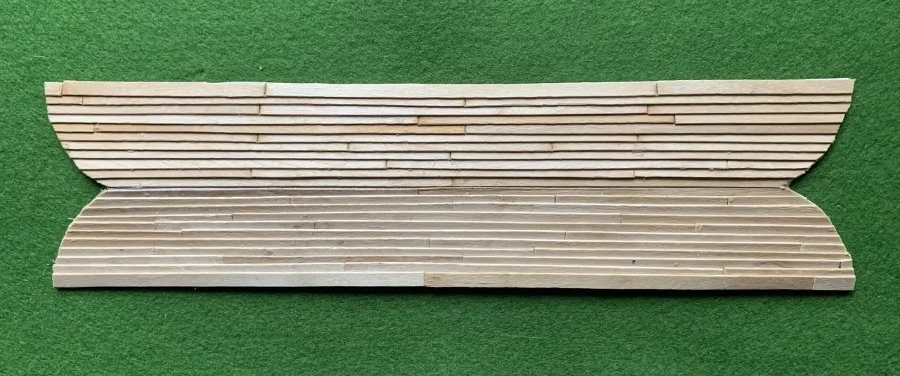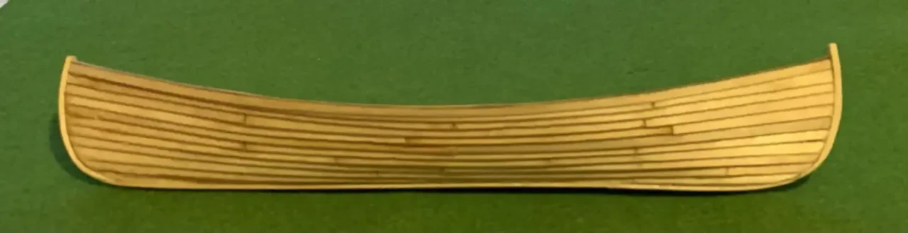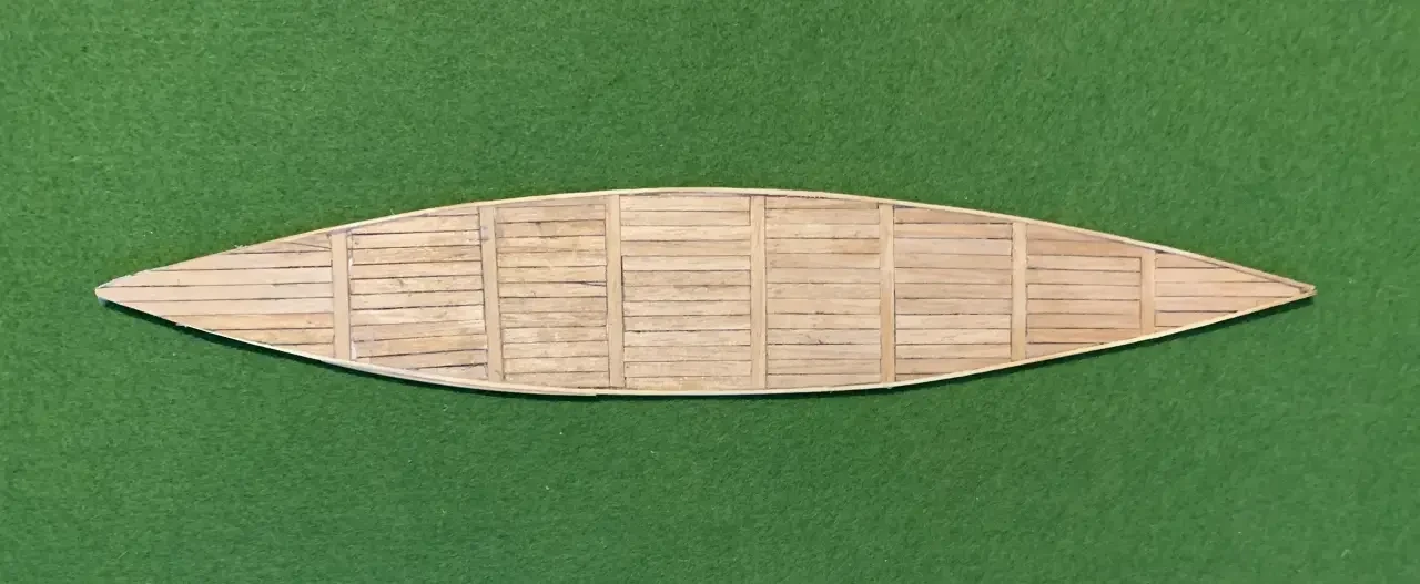 Палуба из реек шириной 3 мм, наклеенных на бумажное основание. Фотография автора