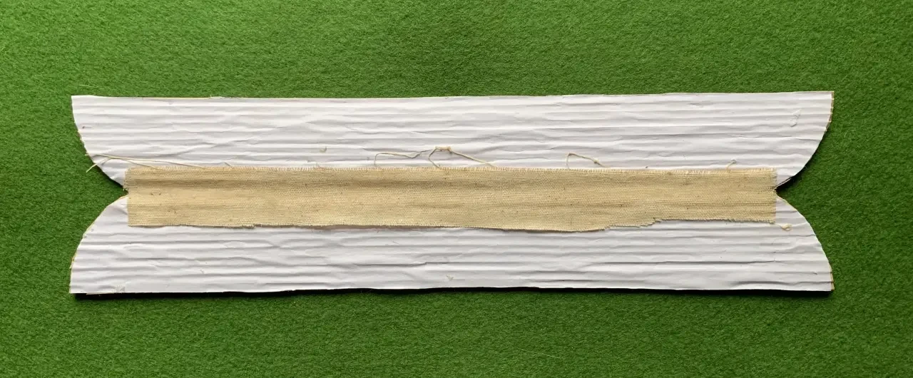 Вид заготовки корпуса изнутри с наклеенной вдоль всей линии сгиба полосы из ткани. Фотография автора