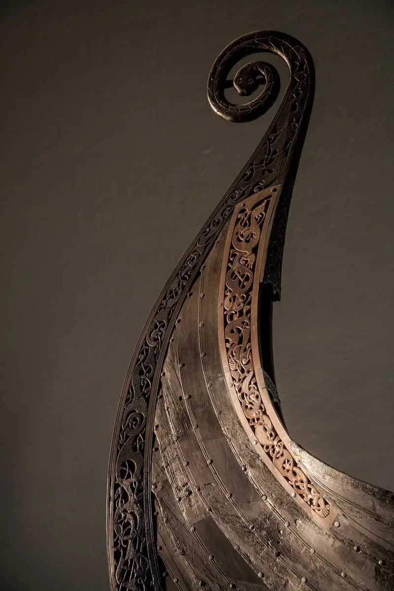 Резной нос «Осебергского корабля». Фотография Музея викингов в Осло
