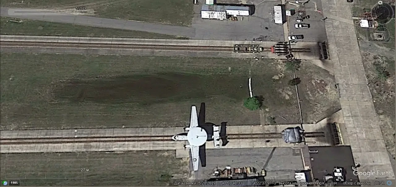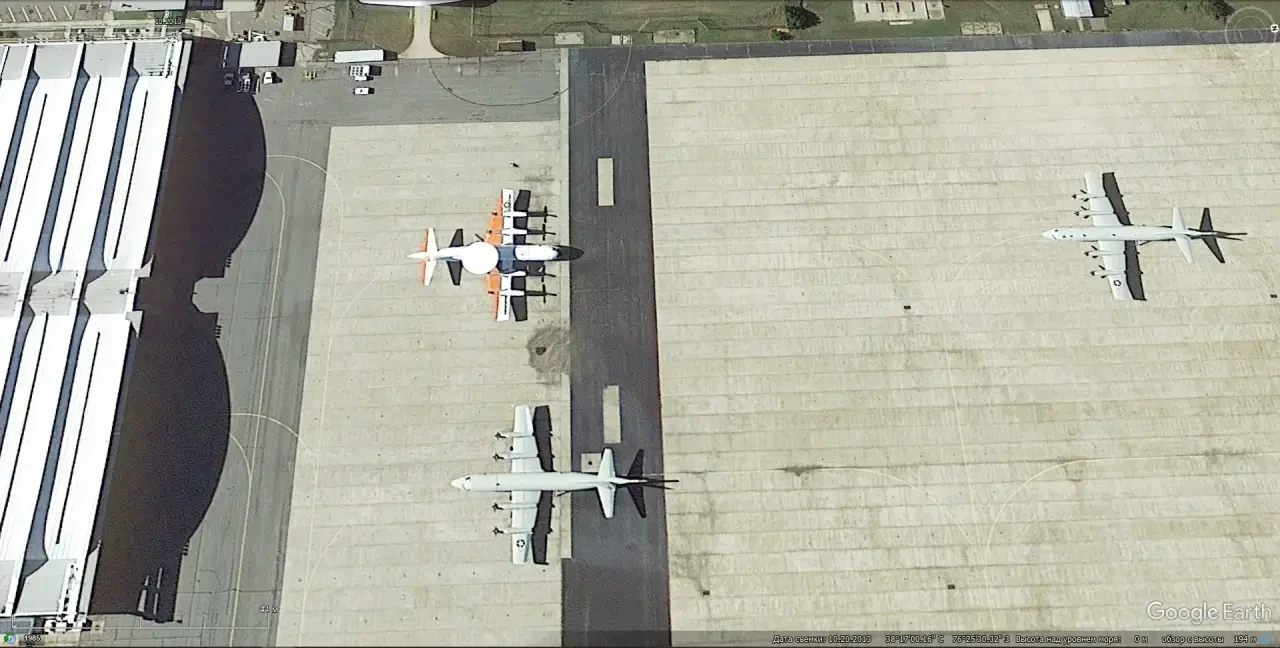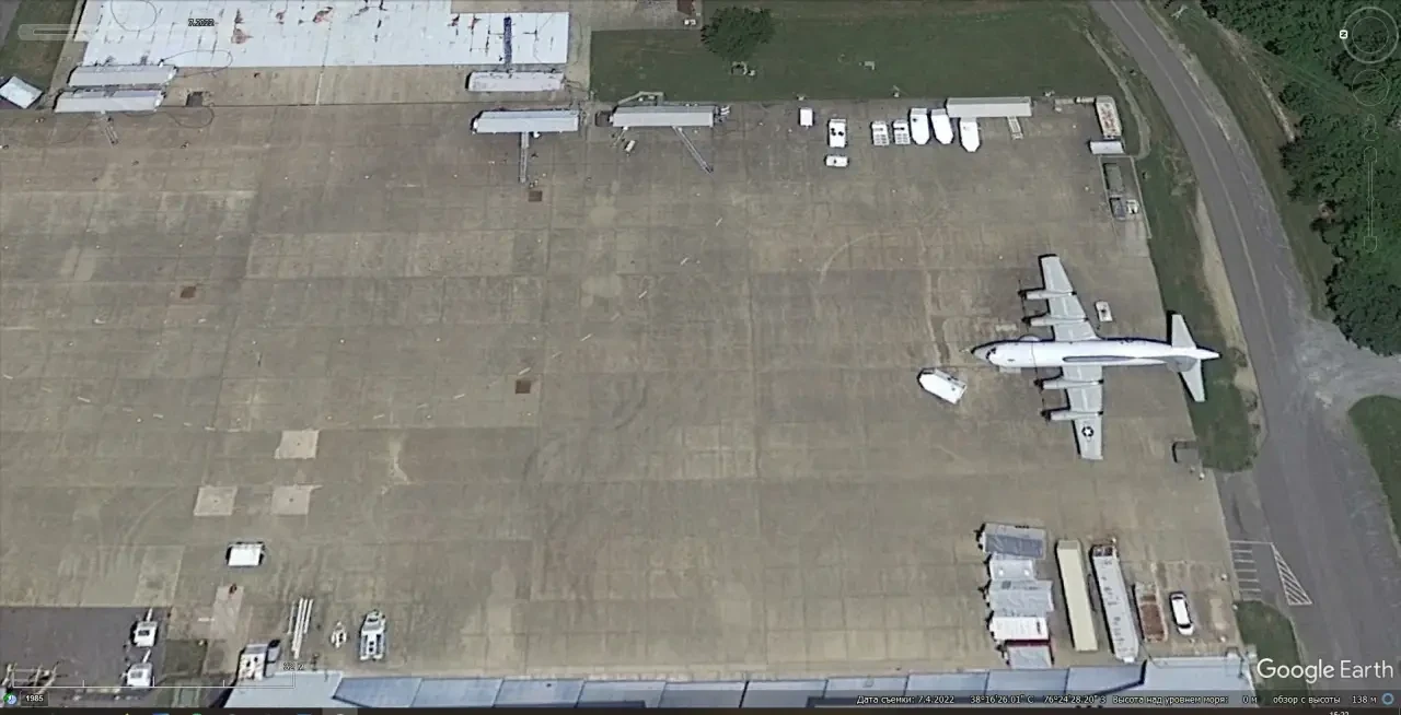 Спутниковый снимок Gооglе Eаrth: самолёт Lockheed EP-3E Aries II на авиабазе Патуксент-Ривер. Снимок сделан в июне 2022 года