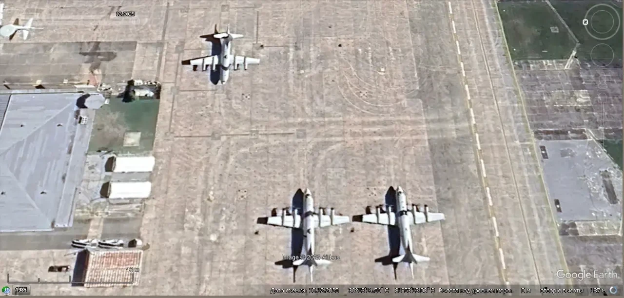 Спутниковый снимок Gооglе Eаrth: самолёты Lockheed P-3 LRT Orion на аэродроме Сесил-Филд. Снимок сделан в октябре 2025 года