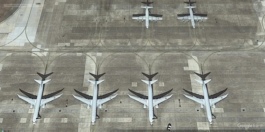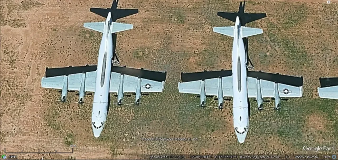 Спутниковый снимок Gооglе Eаrth: самолёты Lockheed EP-3E Aries II на базе хранения авиационной техники Девис-Монтен
