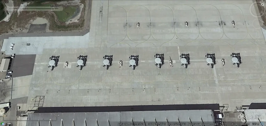 Спутниковый снимок Gооglе Eаrth: самолёты Lockheed P-3С Orion, а также истребители IAI Kfir и Hawker Hunter на авиабазе Пойнт-Мугу