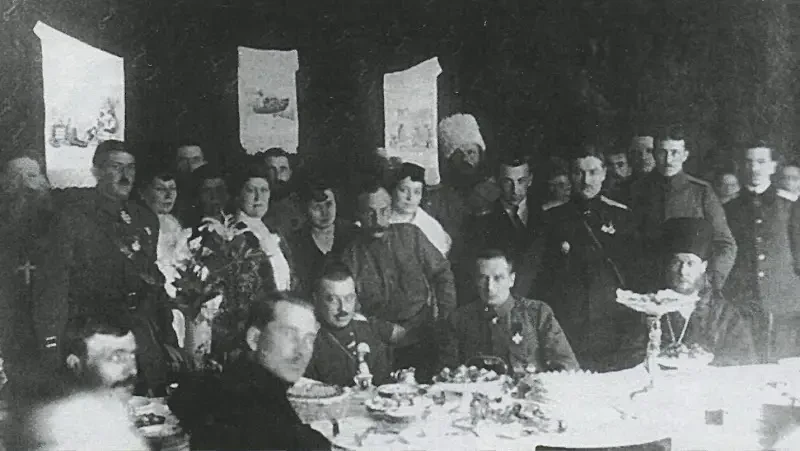 На этом снимке мы видим хорунжего Александра Дутова (крайний слева) с другими офицерами Первого Оренбургского казачьего полка