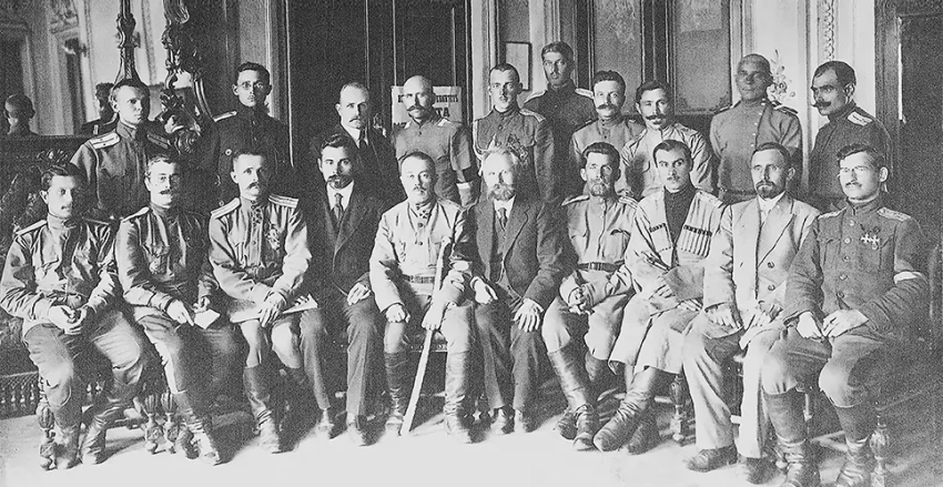 Президиум Всероссийского съезда казачьих частей во главе с А. Дутовым. Петроград, 7 июля 1917 г.