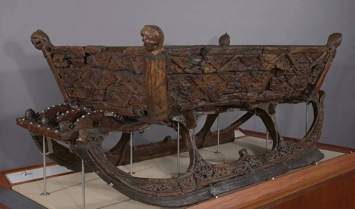 Человеку, которого похоронили на борту корабля, было по крайней мере за 50, причем рост его был около 185 см. А еще он страдал артритом и, скорее всего, просто не мог ходить. Кем он был? Скорее всего, вождем или местным королем в Вестфолде, который пользовался поддержкой других местных вождей. Драгоценностей в погребении археологи не нашли, их, видимо, давно унесли грабители могил, но все равно там нашлось немало интересного, включая игровые доски, посуду, палатки, три лодки поменьше, двенадцать лошадей, восемь собак и двух павлинов. Оружие и драгоценности были унесены еще в конце 900-х годов.