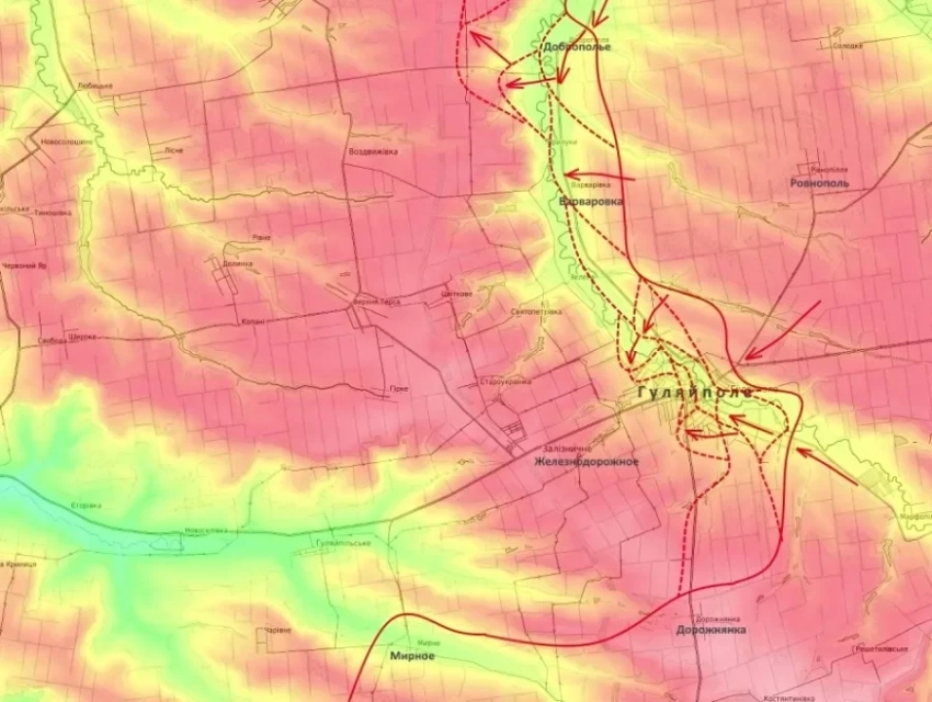 В самом Гуляйполе российские войска контролируют порядка 75% территории города. По имеющимся данным, ВСУ удерживают позиции лишь на улице Шевченко, в прилегающем частном секторе и нескольких многоэтажных домах. Активная работа артиллерии и штурмовых подразделений осложняет оборону противника, у 102-й бригады теробороны отмечаются проблемы с личным составом и снабжением. Полная зачистка города, по оценкам экспертов, может завершиться в ближайшее время.