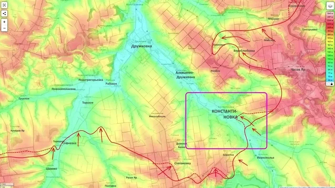 На Краматорском направлении взято Новомарково. Следующая цель - Марково, что позволит двигаться по водоразделу к Малиновке. Эксперты прогнозируют начало боев непосредственно за Краматорск уже в январе 2026 года.