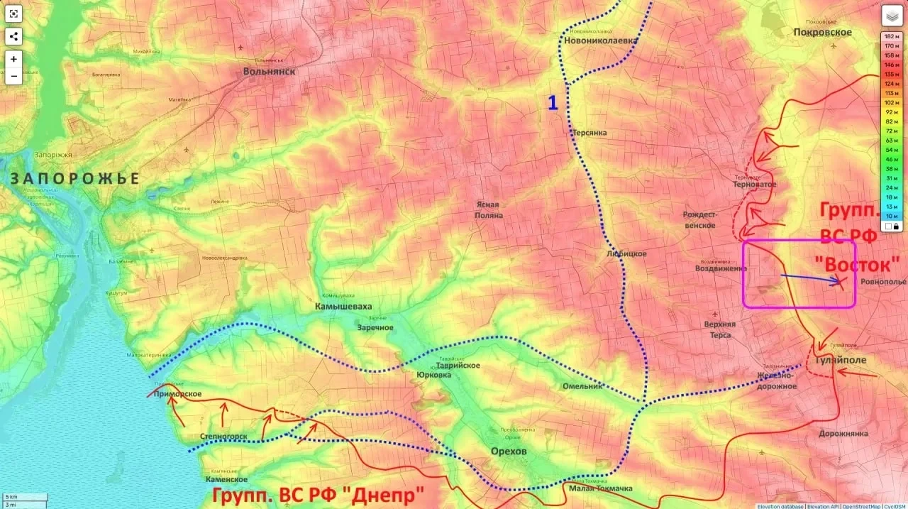 Восточнее российские войска подошли к селу Павловка, а также продвигаются на северо-восток от ранее освобождённого Лукьяновского. Это может позволить перерезать основной маршрут снабжения ВСУ в Орехове, а кроме того выйти к Конке на узких участках для последующего её форсирования.
