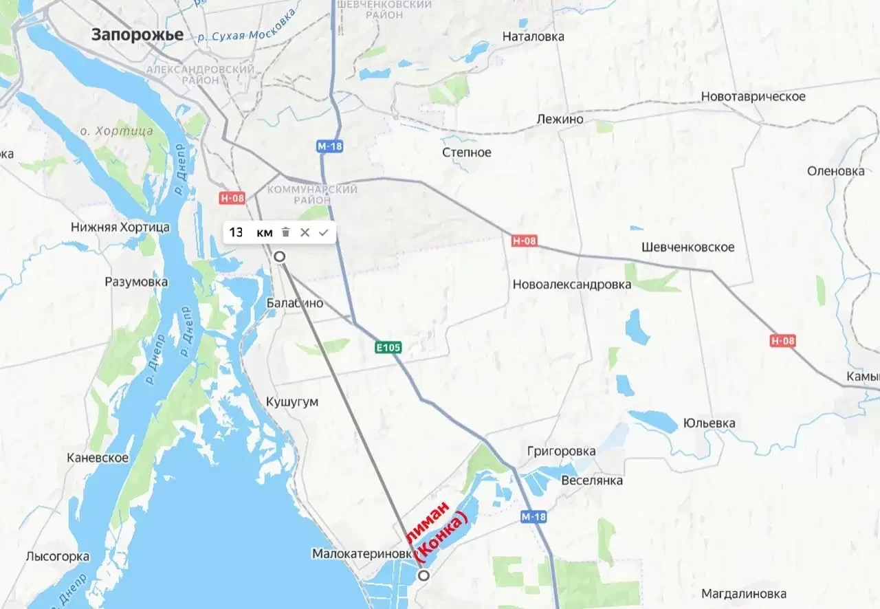 С выходом российской армии на южный берег упомянутого лимана расстояние до южной окраины областного центра, города Запорожье, сократилось до 13 километров. А любой километр приближения - увеличение возможностей по применению того или иного вооружения для нанесения огневого поражения противнику в черте Запорожья и на его подступах, отмечает "Военное обозрение".