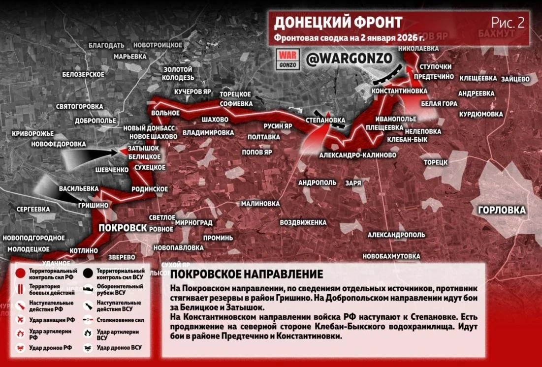 На Покровском фронте ВСУ стягивают резервы к Гришино, ожидаются тяжёлые бои: свежая карта боевых действий на 03.01.2026