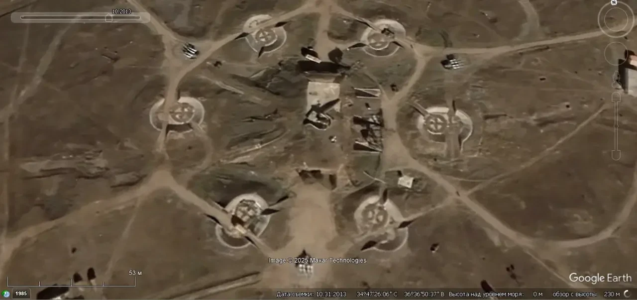 Спутниковый снимок Googlе Eаrth: позиция ЗРК С-125-2М «Печёра-2М» в 3 км западней города Исмаилия. Снимок сделан в июне 2025 года