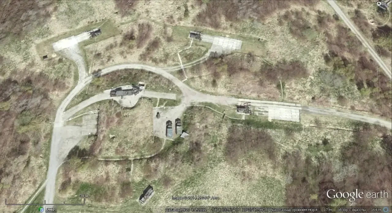 Спутниковый снимок Googlе Eаrth: позиция ЗРК Newa-SC в 3 км восточней города Пуцк. Снимок сделан в апреле 2011 года