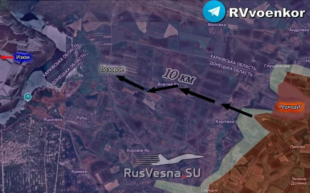 На Краснолиманском направлении российские войска расширили зону контроля на южных подступах к Красному Лиману, а также на севере города. Здесь, атакуя от Яра Пинькова, ВС РФ вклинились в оборону города. ВСУ контратакуют из района Ставков, пытаясь срезать российский выступ. Северо-восточнее наши штурмовые группы стремятся закрыть «карман» на севере от Яра Пинькова. Есть успехи в лесах между Новосёловокй и Яровой. Вдоль р. Северский Донец наши продвигаются на восточной окраине Святогорска. Выше по фронту обходят по флангам Коровий Яр с прицелом на Лозовое. Противник концентрирует силы у Богуславки для контратаки.