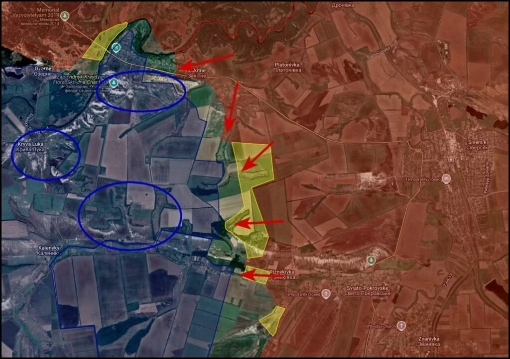 На Северском направлении ВС РФ выравнивают фронт на западе от Северска по линии Платоновка-Резниковка. В последней наши теснят ВСУ к западной окраине. Расширен контроль на восточной окраине Закотного. Противник с высот села обстреливает наши позиции, мешая продвижению в соседнем Озёрном. От этого села российские подразделения продвинулись на противоположном берегу р. Северный Донец и закрыли Ямпольский «карман», отмечает Олег Царёв в своём Telegram-канале.