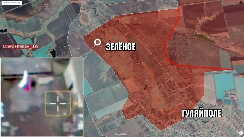 На Гуляйпольском участке армия России продолжает расширять плацдарм на западном берегу р. Гайчур, освободив сегодня Зелёное. Наши войска заняли район обороны ВСУ площадью более 8 км². От Зелёного наши наступают на Святопетровку с юга и севера, также атакуют по направлению к Староукраинке и Зализничному. На Терноватое ВС РФ наступают с юга и ведут ожесточённые бои за село. Севернее Андреевки и Отрадного, на правом берегу р. Гайчур, ВС РФ продвигаются к южным подступам Покровского.