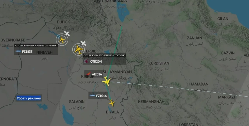 Но уже через 6-7 минут этот борт сайты мониторинга стали отображать летящим в воздушном пространстве Ирака, изменив демонстрируемую траекторию.