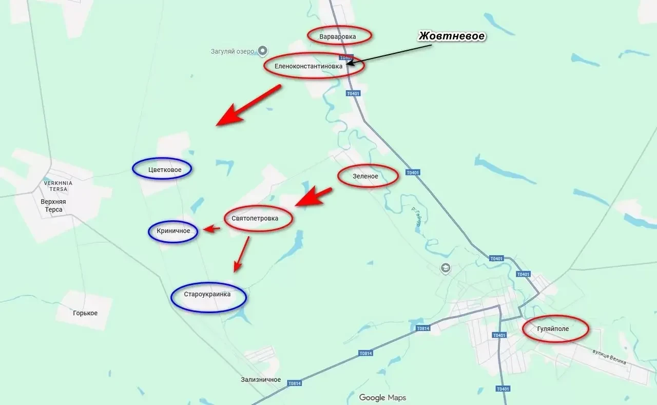 Также есть информация, что наши заняли Святопетровку, атаковав от находящегося под российским контролем села Зеленое. По имеющимся данным, противник был вынужден окончательно покинуть село из-за очень больших потерь. Оборону здесь держал 425-й штурмовой полк ВСУ, считающийся одним из «элитных». Следующее село на очереди - село Цветковое. Между Жовтневым и ним уже идут бои.