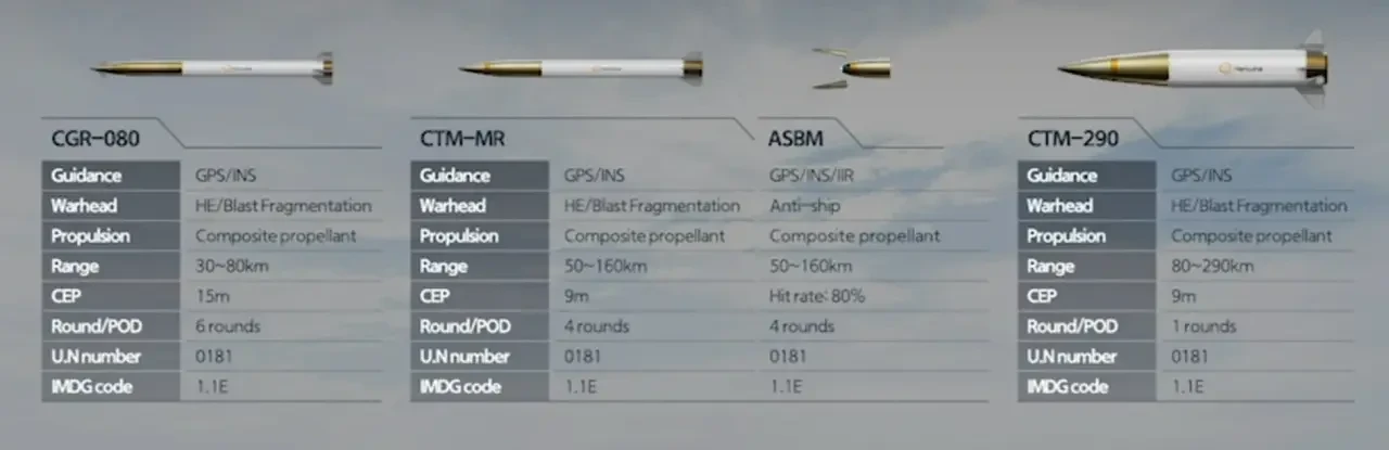 Chunmoo выигрывает за счёт возможности использовать более широкий ряд боеприпасов, включая те, которые США пока не готовы поставлять Норвегии. Это 239-мм стандартные ракеты с дальностью около 80 км, тактические ракеты CTM-290 с дистанцией до 290 км и, вероятно, новые оперативно-тактические CTM-500, поражающие цели на расстоянии до 500 км. Хотя HIMARS теоретически может стрелять ракетами PrSM на 500 км, США на данный момент не дали согласия на их поставку Норвегии.
