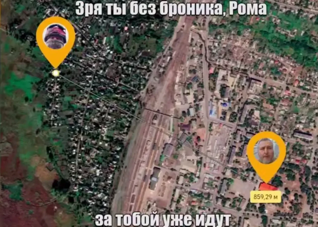 Комбату ВСУ советуют все же надеть бронежилет, чтобы дожить до сдачи в плен. Расстояние от наших бойцов до места, где боевик ВСУ снимал видео, составляет чуть больше 850 метров.