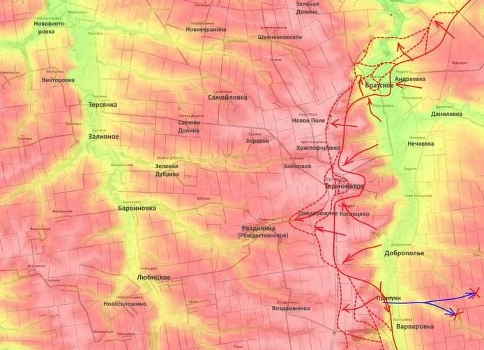 «Наши бойцы группировки «Восток» разбили здесь штурмовиков 33-го штурмового отдельного полка, и это говорит о том, что у противника с резервами всё очень и очень плохо, потому что в обороне стоят штурмовики - это их не типичная задача. Они должны контратаковать, а они стоят в обороне, причём неудачно. Терноватое они профукали, как и Придорожное», - отметил эксперт.