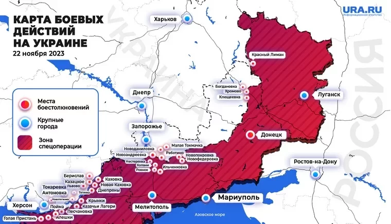 Карта боевых действий в зоне СВО по состоянию на 22.11.2023