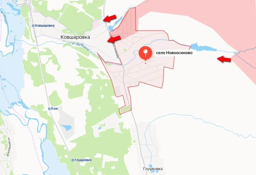 Продвижение к Ковшаровке наших войск идёт и с востока. На этом участке фронта подразделения армии России подошли к селу Новоосиново, где продолжаются бои.
