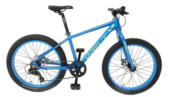 Завершает наш обзор фэтбайк велосипед Welt Fat Freedom 24. Это настоящая «акула» среди велогигантов: он рассчитан на спортсмена ростом 167…168 см при общем весе 14,3 кг и размерах алюминиевой рамы 15.74, 17.71 или 19.68 дюймов (3 размера). Колёса для фэтбайка небольшие – минимальный размер 26 дюймов, похвалы заслуживают мощные широкие покрышки Schwalbe Jumbo Jim Evolution на 4,8 дюйма на алюминиевом ободе. Если не до конца надувать колёса, эти велосипеды продемонстрируют мягкую и комфортную езду в условиях отсутствия дороги, для дополнительной плавности предусмотрен амортизатор Hard tail.